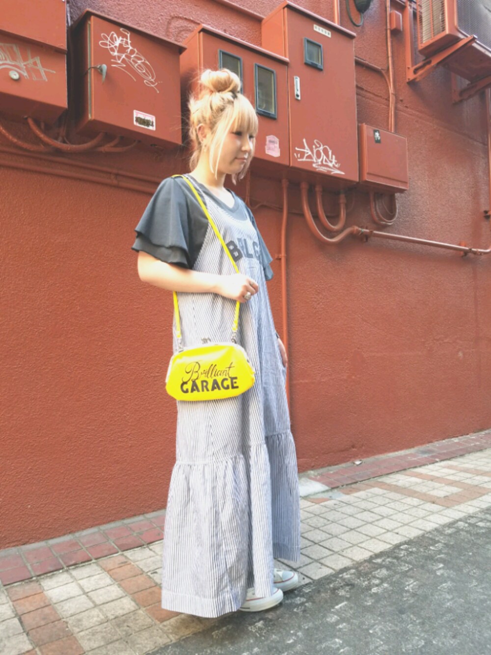 まぁ(RNA MEDIA 甲府)のワンピース「D1408 ストライプボリュームキャミワンピース」を使ったコーディネート