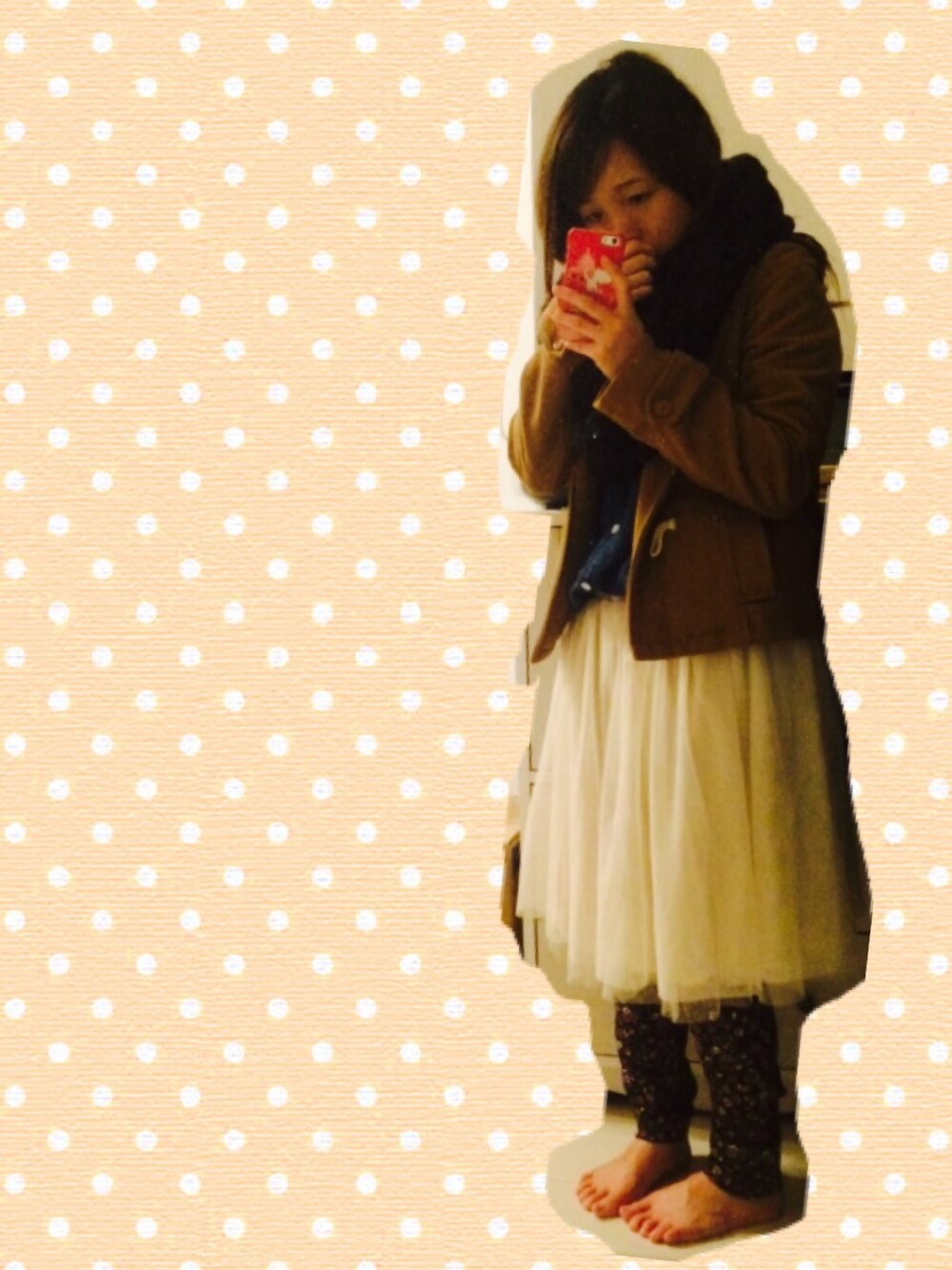 レギパンは主張が強すぎちゃうから チュールスカート重ね着してみた。 デニムのシャツワンピをイン。 首元あたためーの ついでに鼻まで隠すたいぷ。 寒いけどアイス食べたくなるたいぷ。