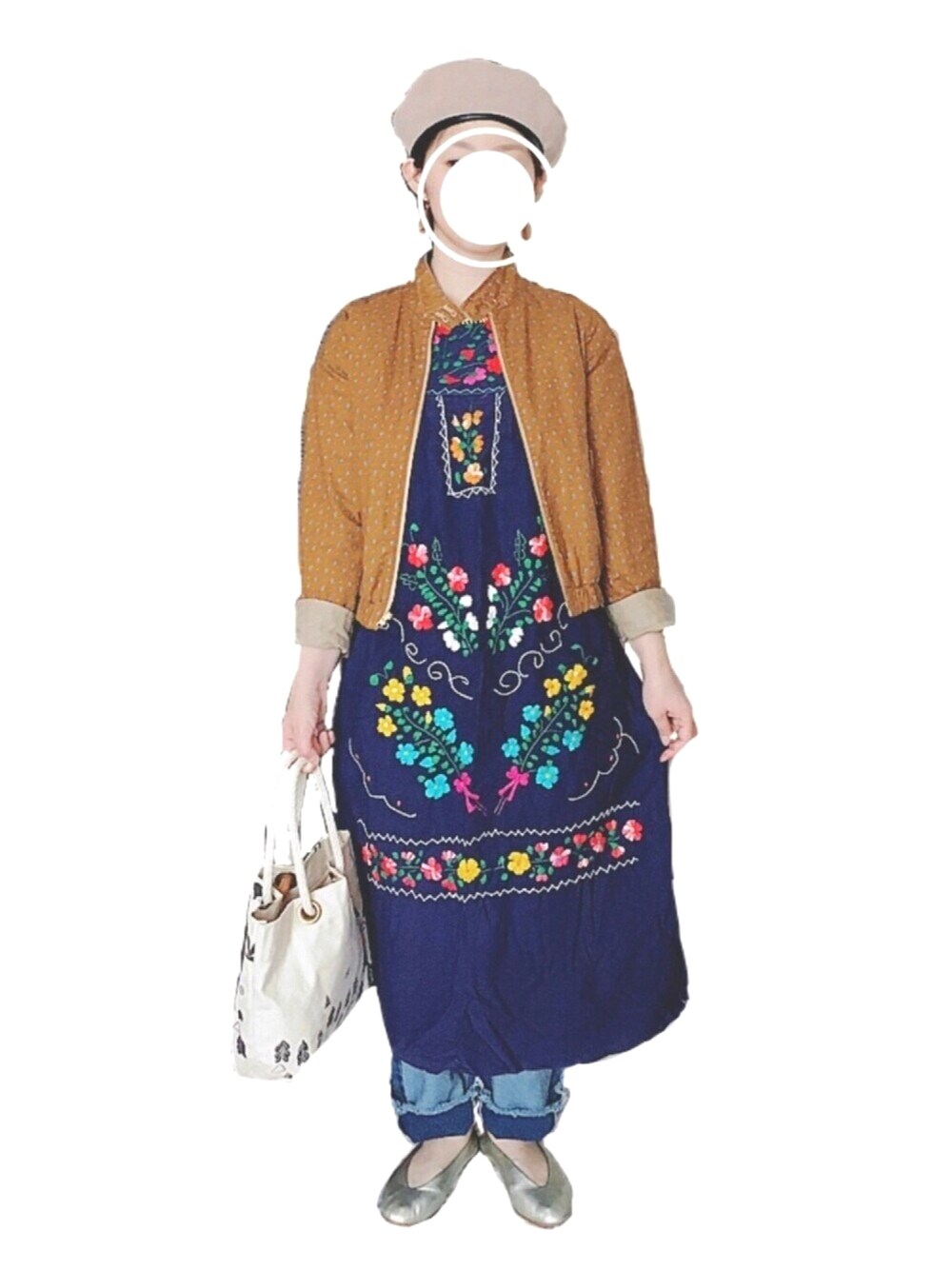 コメントやいいね、セーブ、フォロー、 ぱっと開いてくださった方も ありがとうございます☺️❤️ 何年も着ている刺繍ワンピース👗✨ いつだったか下北沢の古着屋で買ったなあ〜 着すぎて褪せてるけど キニシナイ…😂 トート united bamboo