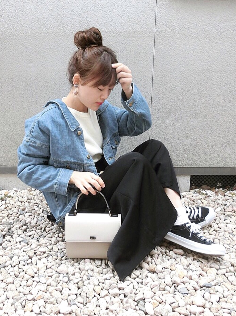 chicchimoのデニムジャケット「Sheson(シーズン)バックレースアップ ルーズデニムジャケット」を使ったコーディネート