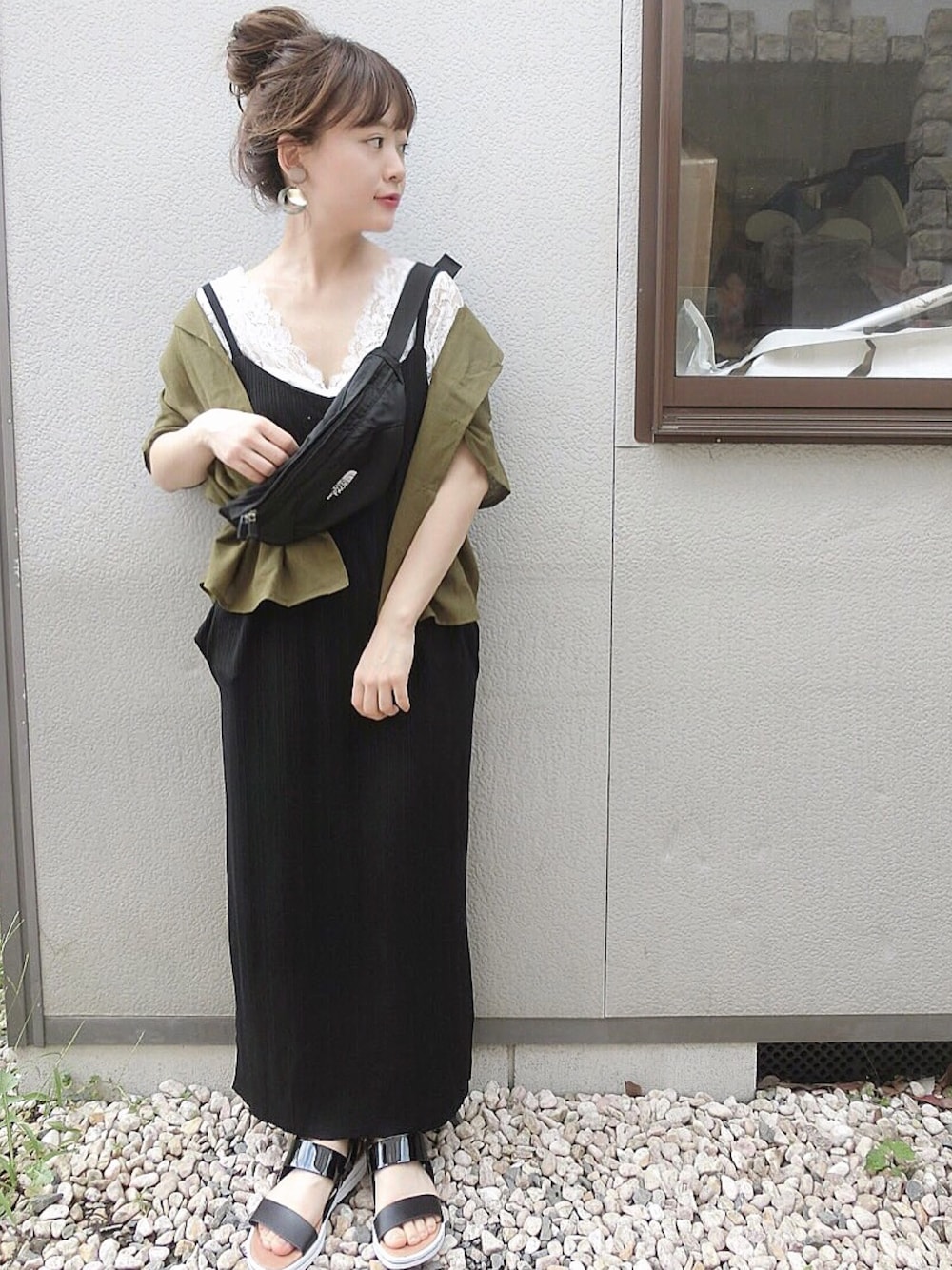 見てくださりありがとうございます。 INKWELLさんのキャミワンピ👗 シルエットも良いし着やすくてかわいいです✨ GRLさんのレーストップスはカップ入りで便利!!カーキのシャツは綿麻混で着心地良いです✨ いつも いいね,save,フォローもありがとうございます(;_;)!