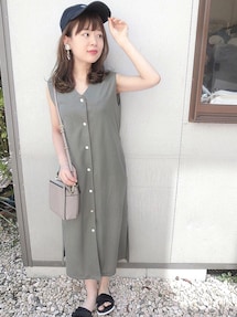 chicchimoのワンピース「ストラップSETボタンスリットワンピース」を使ったコーディネート