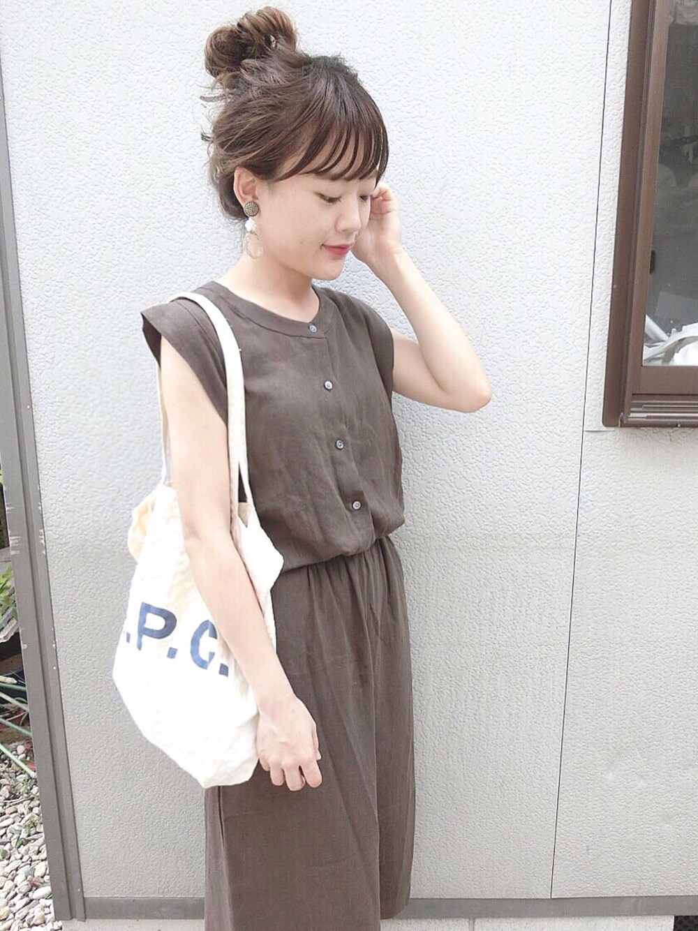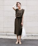 chicchimoのワンピース「ラウンドネックスリーブレスワンピース」を使ったコーディネート