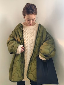 chicchimoのノーカラージャケット「ノーカラーキルティングコート」を使ったコーディネート