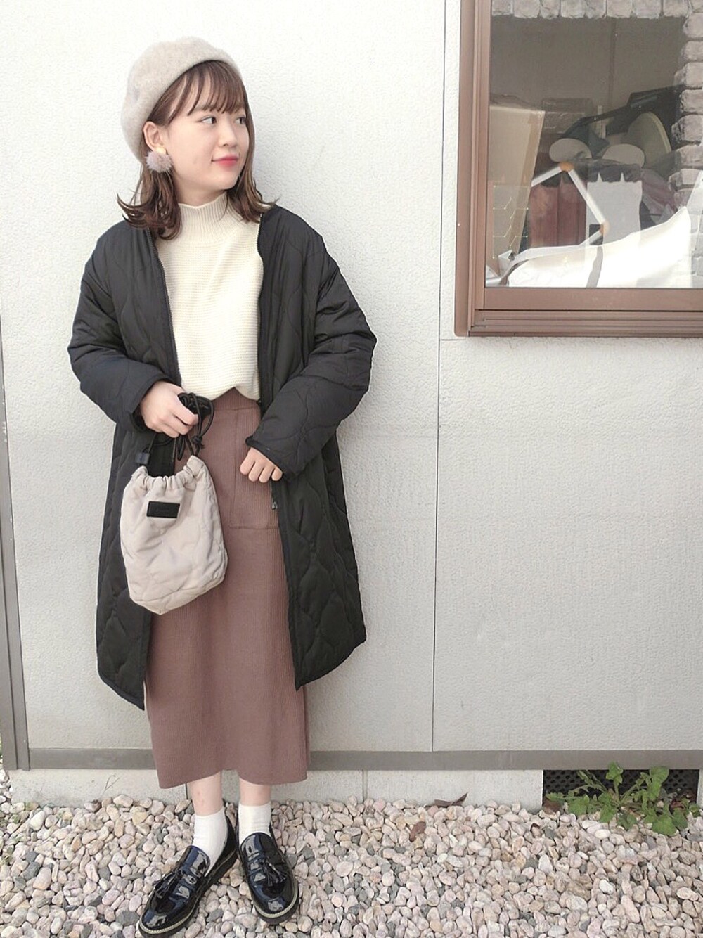 chicchimoのノーカラージャケット「ノーカラーキルティングコート」を使ったコーディネート