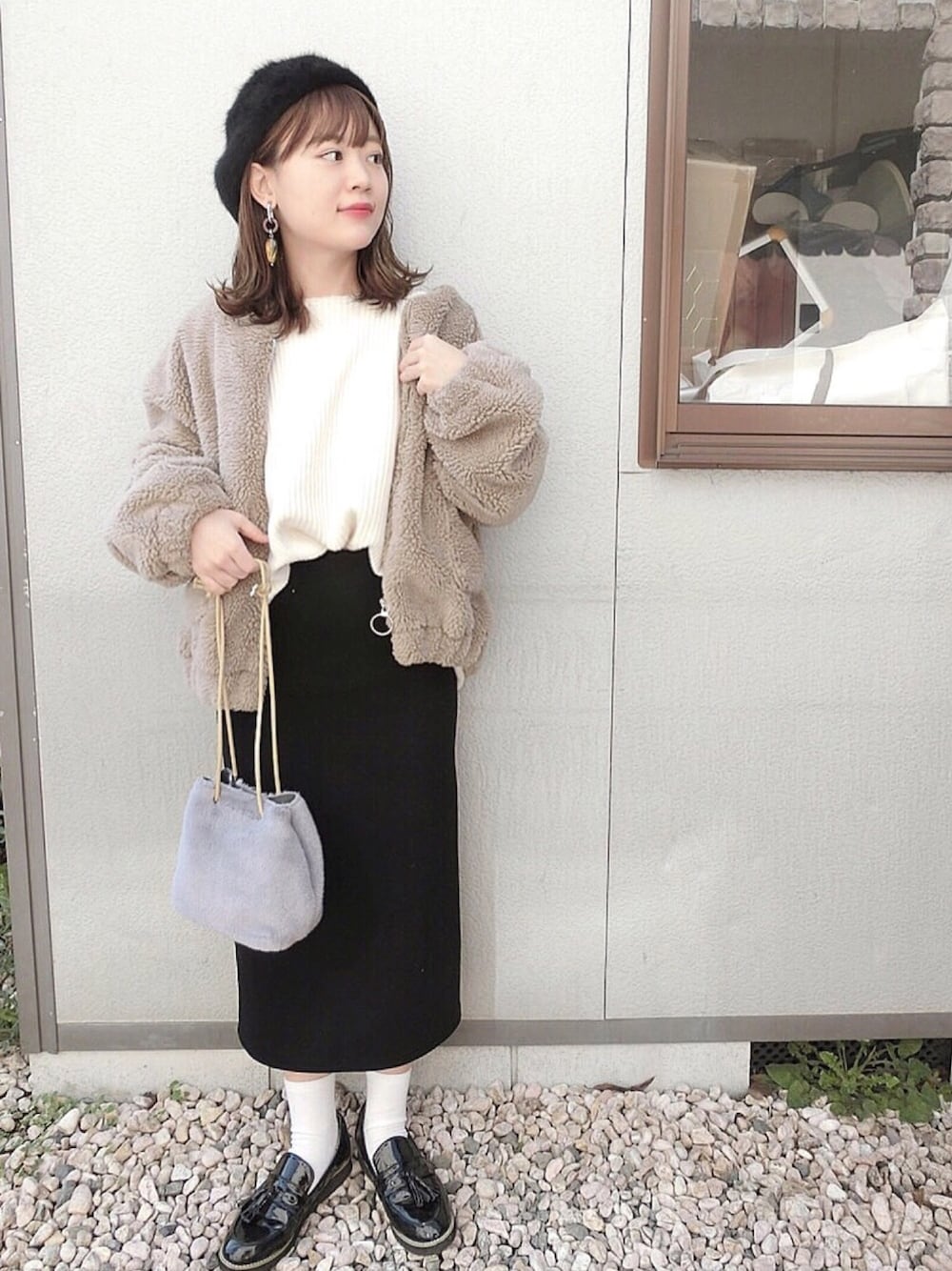 chicchimoのその他アウター「ポケットショートボアジャケット」を使ったコーディネート
