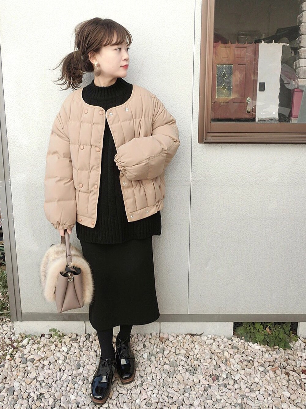 chicchimoのその他アウター「ラウンドネックダブルパディング *全2色*」を使ったコーディネート