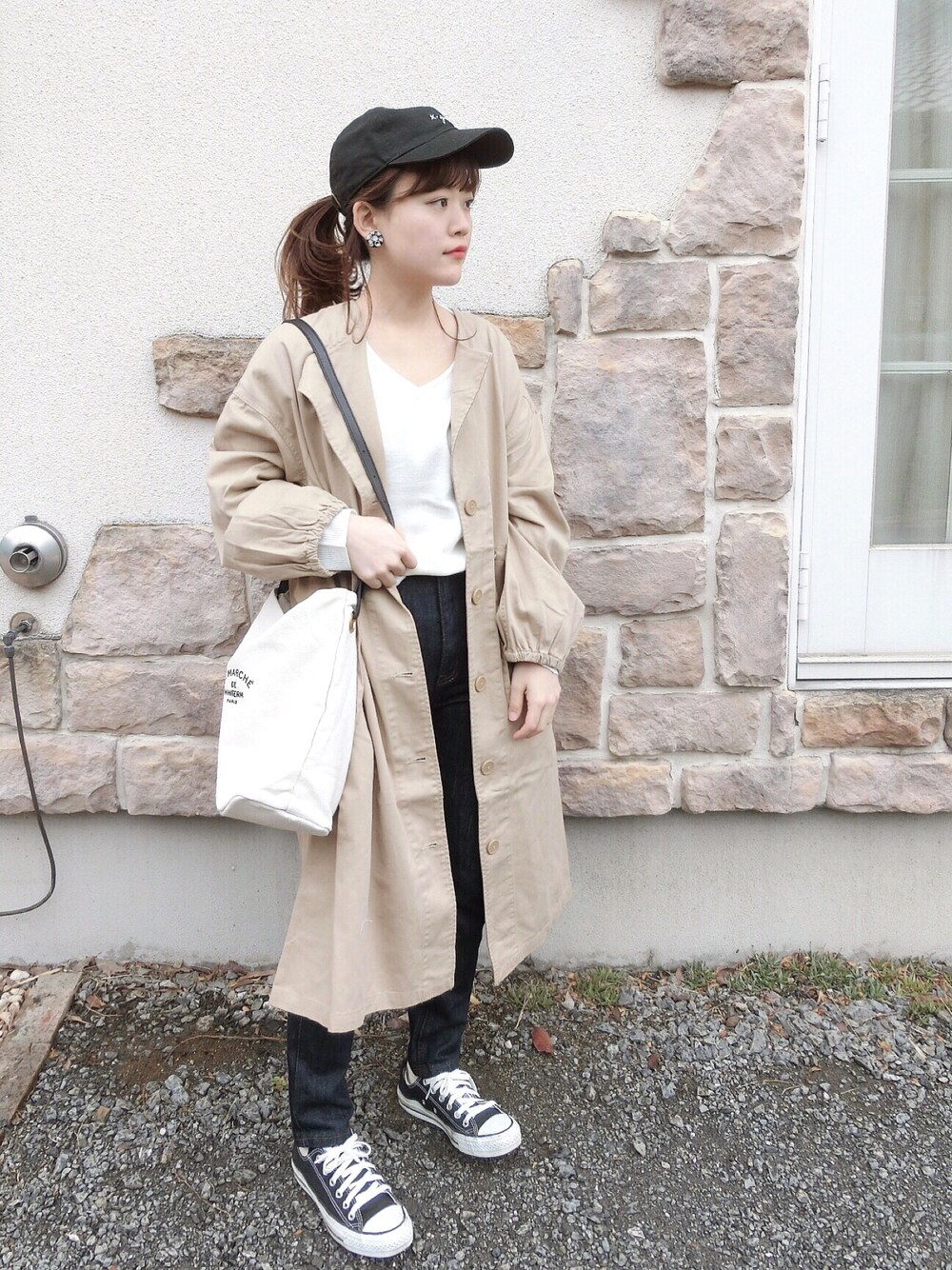 chicchimoのモッズコート「ツイルノーカラーモッズコート」を使ったコーディネート