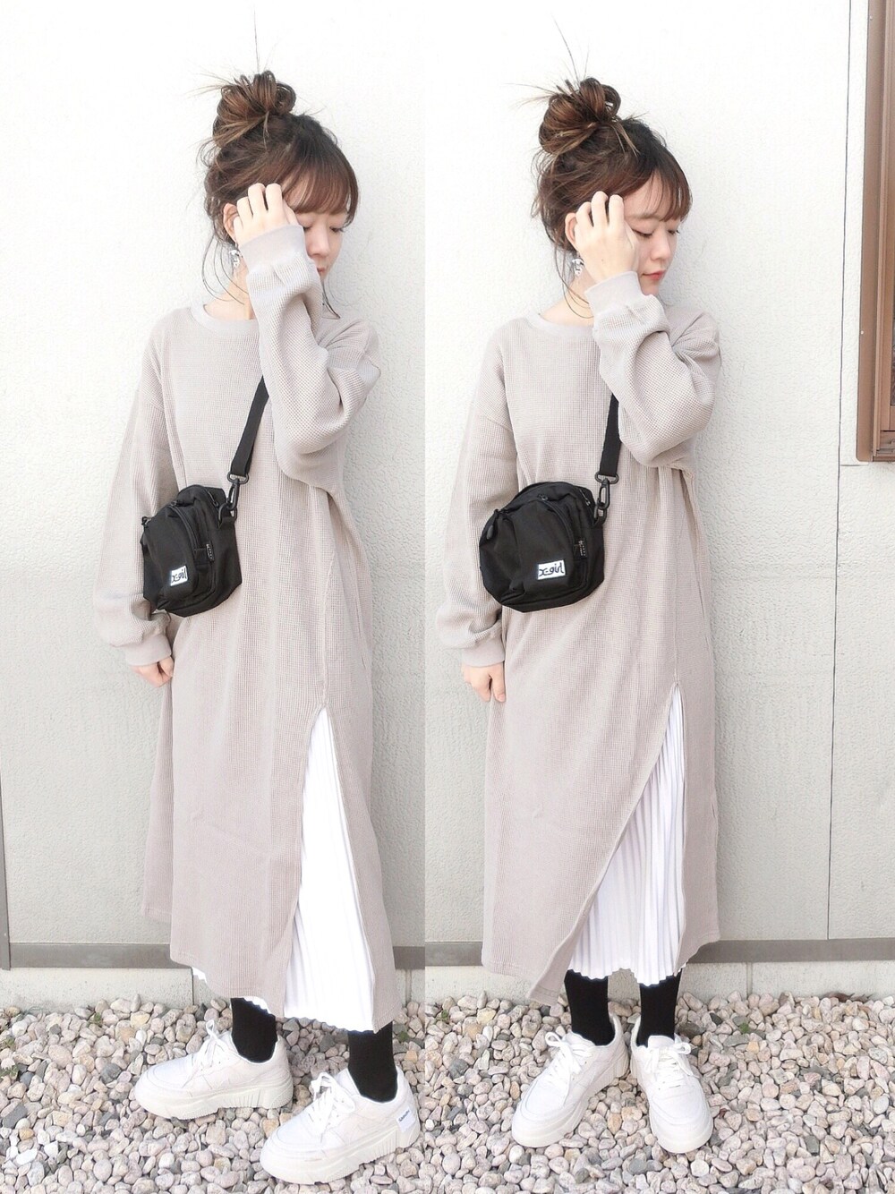 chicchimoのワンピース「バックベルトワッフルスリットワンピース」を使ったコーディネート