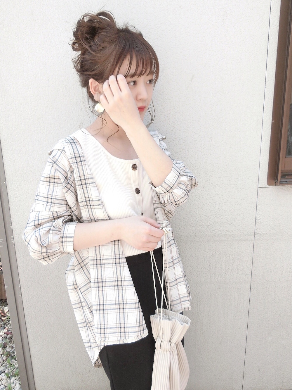 chicchimoのシャツ/ブラウス「袖ボリュームチェック柄シャツ」を使ったコーディネート