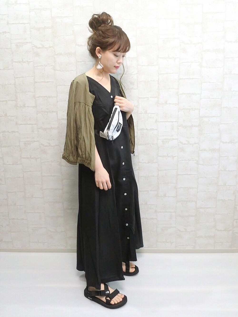 chicchimoのワンピース「フロントボタンノースリーブワンピース」を使ったコーディネート