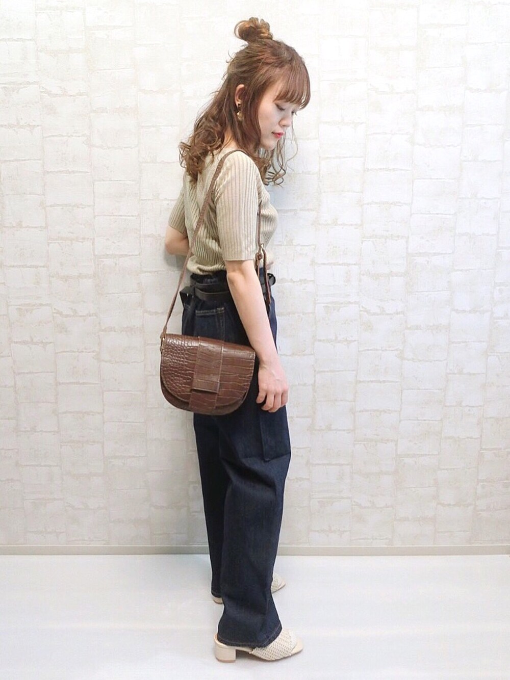 chicchimoのデニムパンツ「ベルト付きハイウエストワイドパンツ」を使ったコーディネート