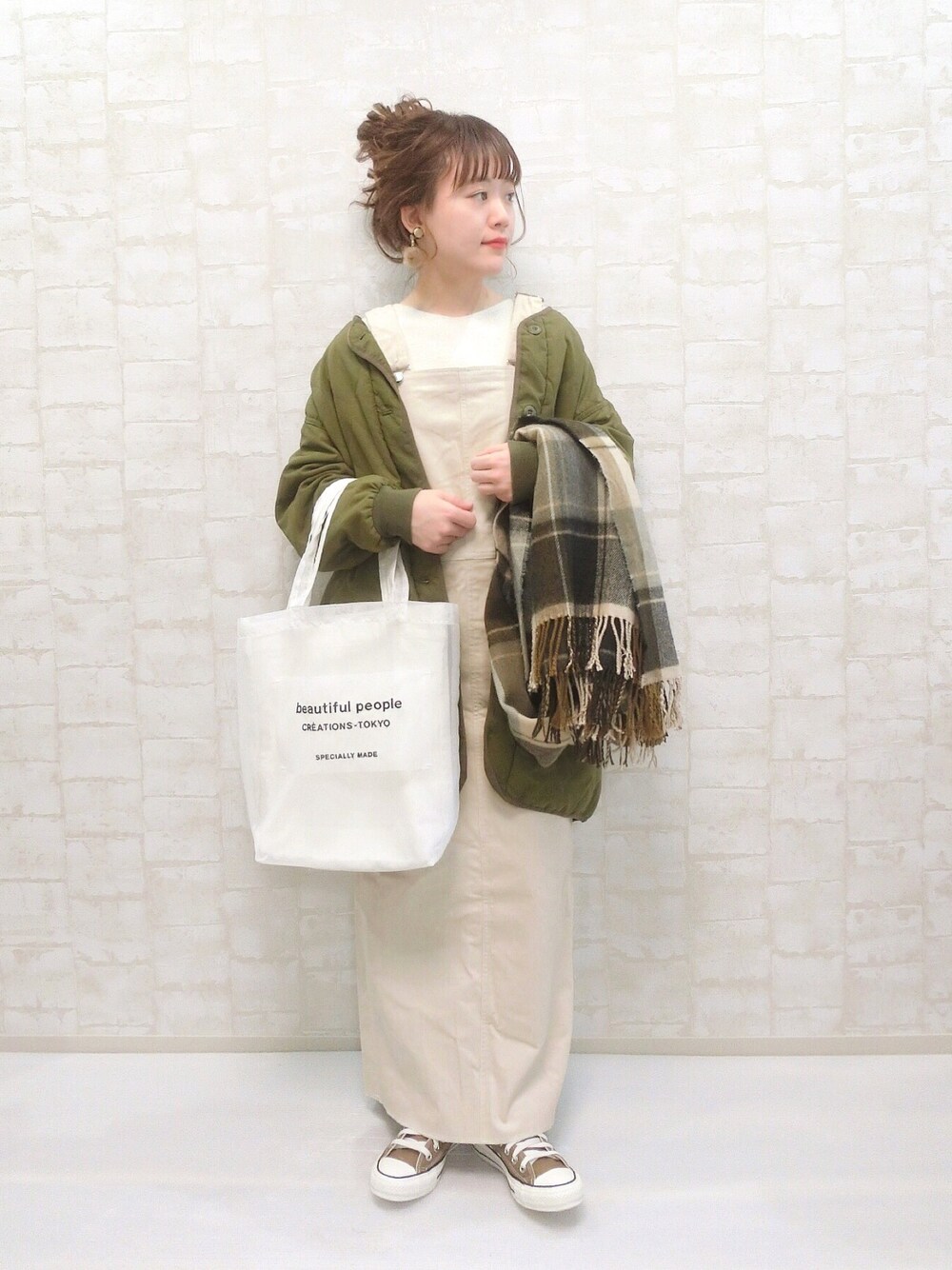 chicchimoのスカート「コーディロイロングジャンパースカート」を使ったコーディネート