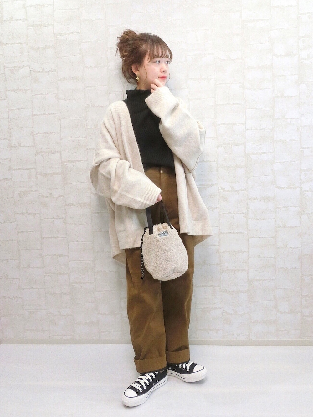 chicchimoのカーディガン/ボレロ「リンギングオーバーシルエットニットカーディガン/シンプルミドル丈ルーズカーディガン」を使ったコーディネート