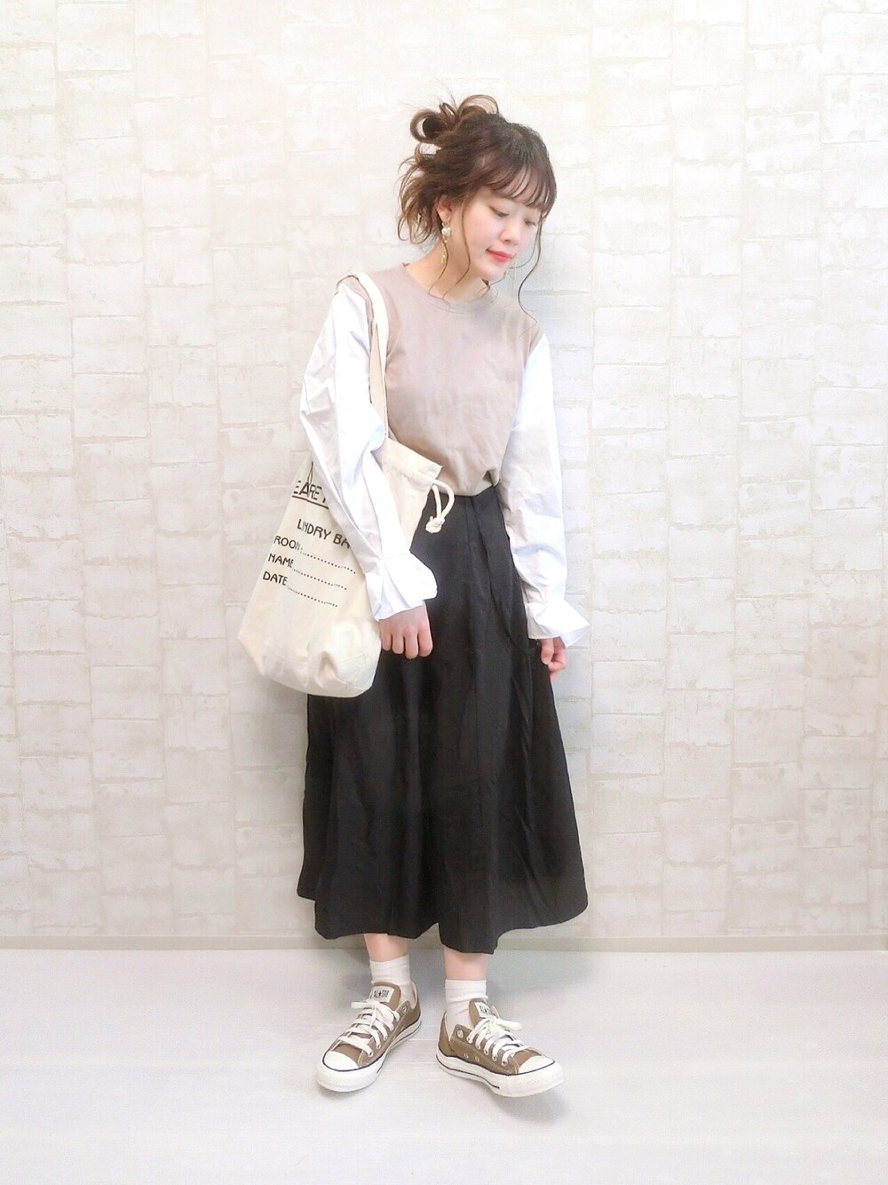 chicchimoのTシャツ/カットソー「スリーブタックコントラストTシャツ」を使ったコーディネート