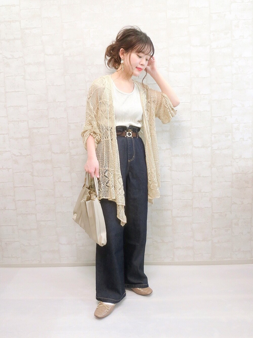 chicchimoのカーディガン/ボレロ「透かし編みカシュクールカーディガン」を使ったコーディネート