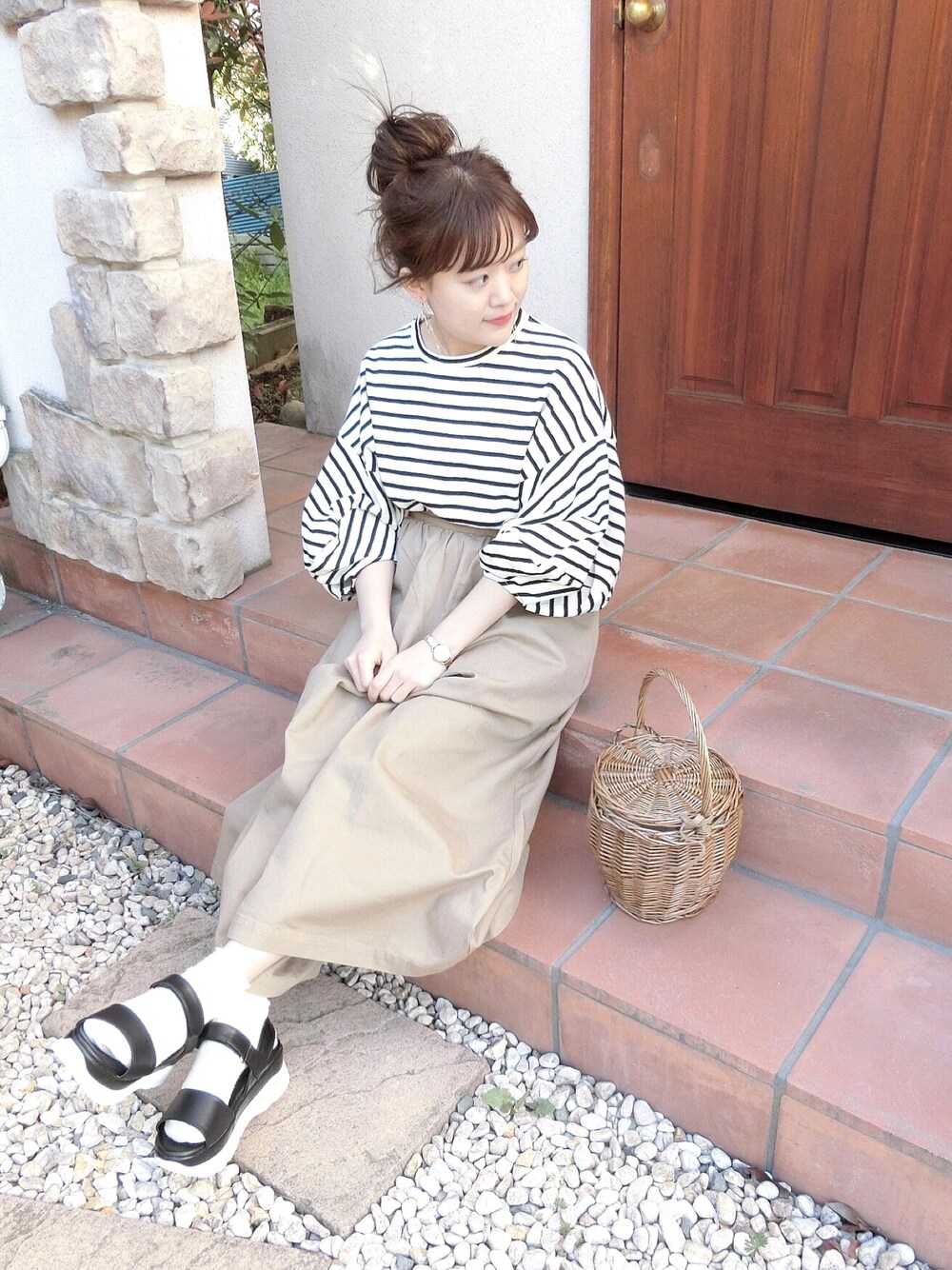 chicchimoのTシャツ/カットソー「ボリュームスリーブボーダーTシャツ」を使ったコーディネート
