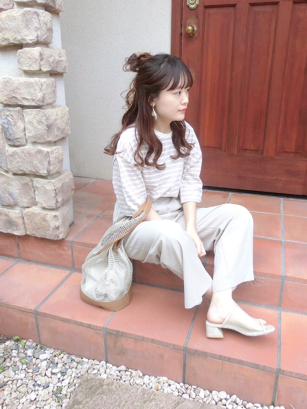 chicchimoのTシャツ/カットソー「スリットヘム半袖ボーダーTシャツ」を使ったコーディネート