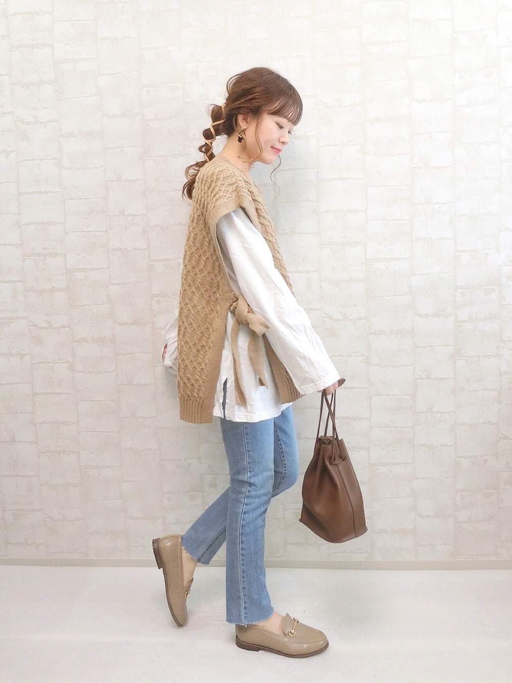 chicchimoのベスト「ツイストアランニットベスト」を使ったコーディネート