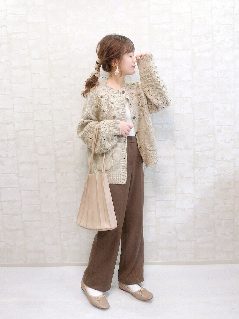 chicchimoのカーディガン/ボレロ「フラワーガーデンニットカーディガン」を使ったコーディネート