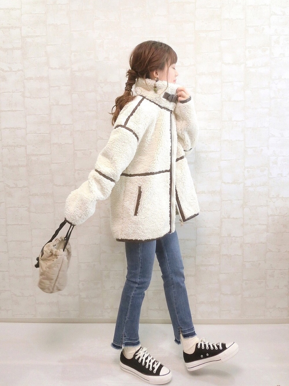 chicchimoのブルゾン「【サイズ展開有】パイピングムートンボアジャケット / AUNT MARIE'S」を使ったコーディネート