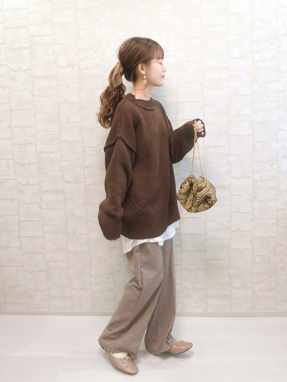 chicchimoのニット/セーター「パイピングオーバーサイズニット/AUNTMARIE'S」を使ったコーディネート