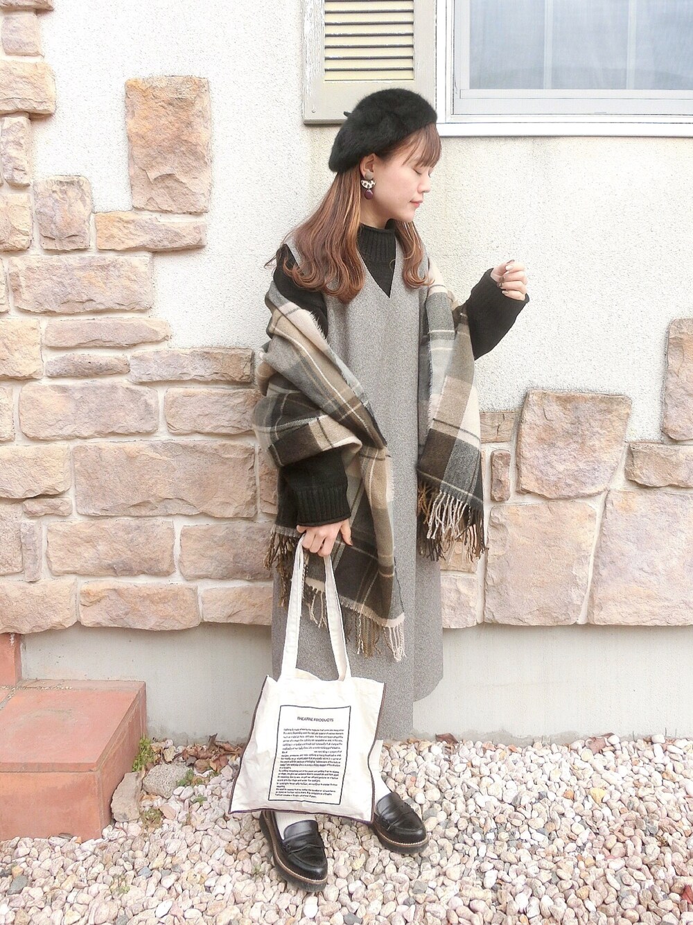 chicchimoのワンピース「起毛Vネックスリーブレスワンピース」を使ったコーディネート