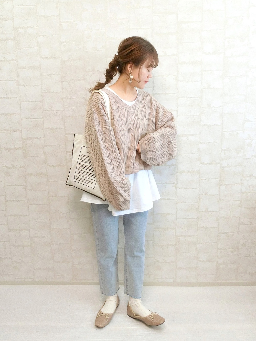 chicchimoのニット/セーター「Vネックツイストルーズニット」を使ったコーディネート