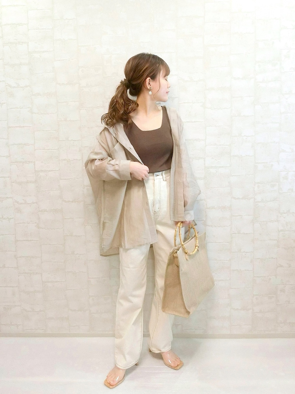 見てくださりありがとうございます。 全身GRLのプチプラコーデです❣️ ベージュとブラウンで揃えてワントーンコーデ🙌🌸5点で¥8,095✨1万円以下でコーデが完成します!! サンダルは23.5を履いてます👡 Instagram→wear.chicchimo いつも いいね,お気に入り,フォローもありがとうございます!