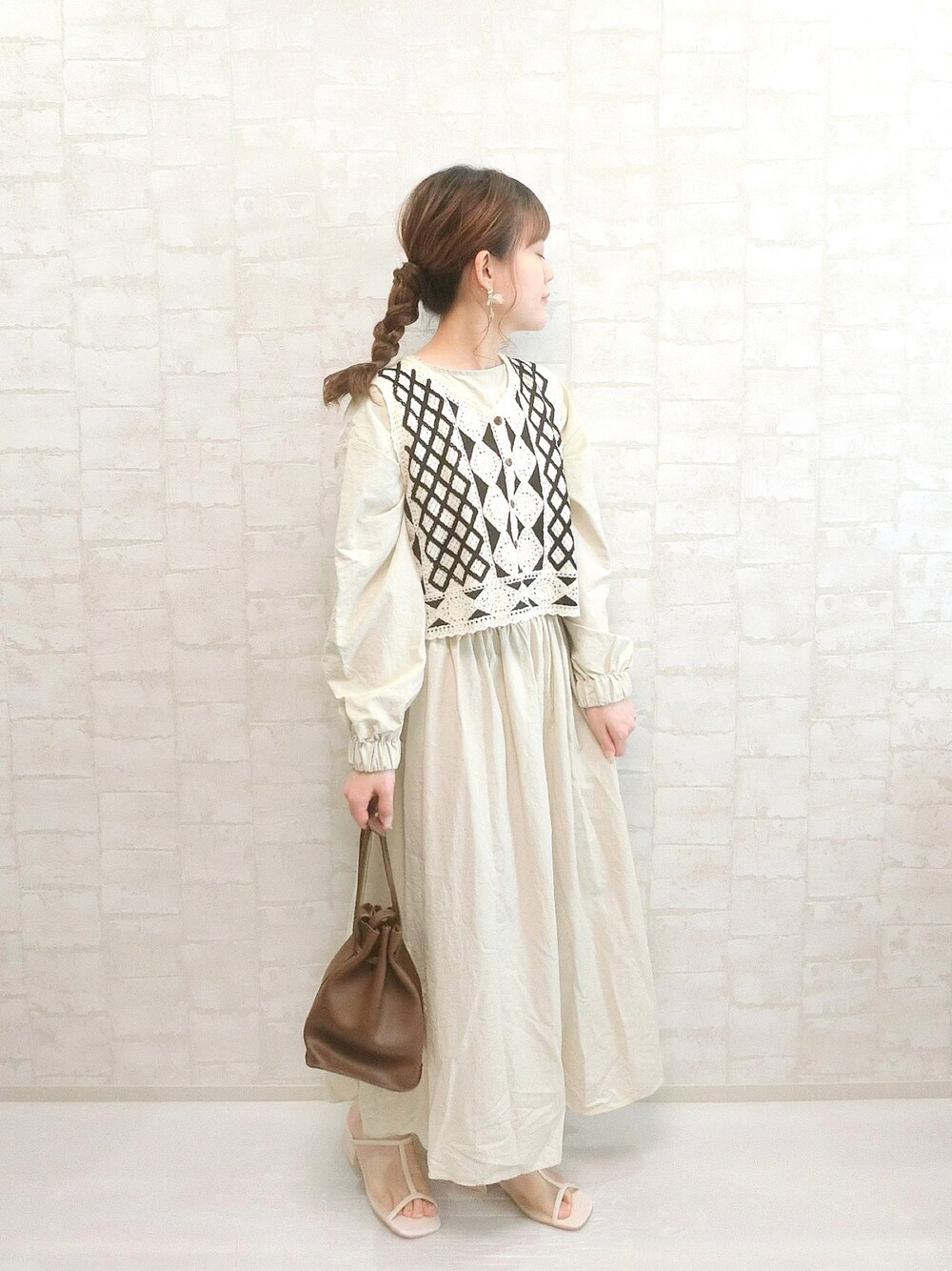 chicchimoのベスト「かぎ針編みニットベスト」を使ったコーディネート