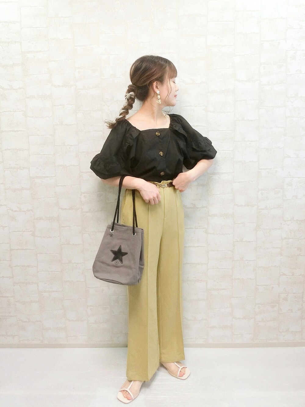 chicchimoのショルダーバッグ「キャンバスバケットバッグ-6」を使ったコーディネート