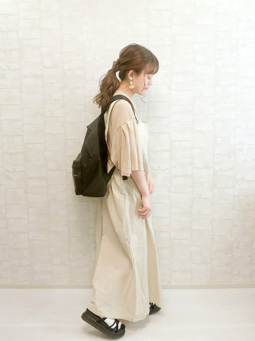 見てくださりありがとうございます。 DHOLICアイテムコーデ🙌 ジャンスカは薄手なので涼しく着られます👗日に当たると透けるかもなのでペチコートを着ておくと安心です🙆♀️! ベージュのトップスと合わせてワントーンコーデ🌸 Instagram→wear.chicchimo いつも いいね,お気に入り,フォローもありがとうございます!