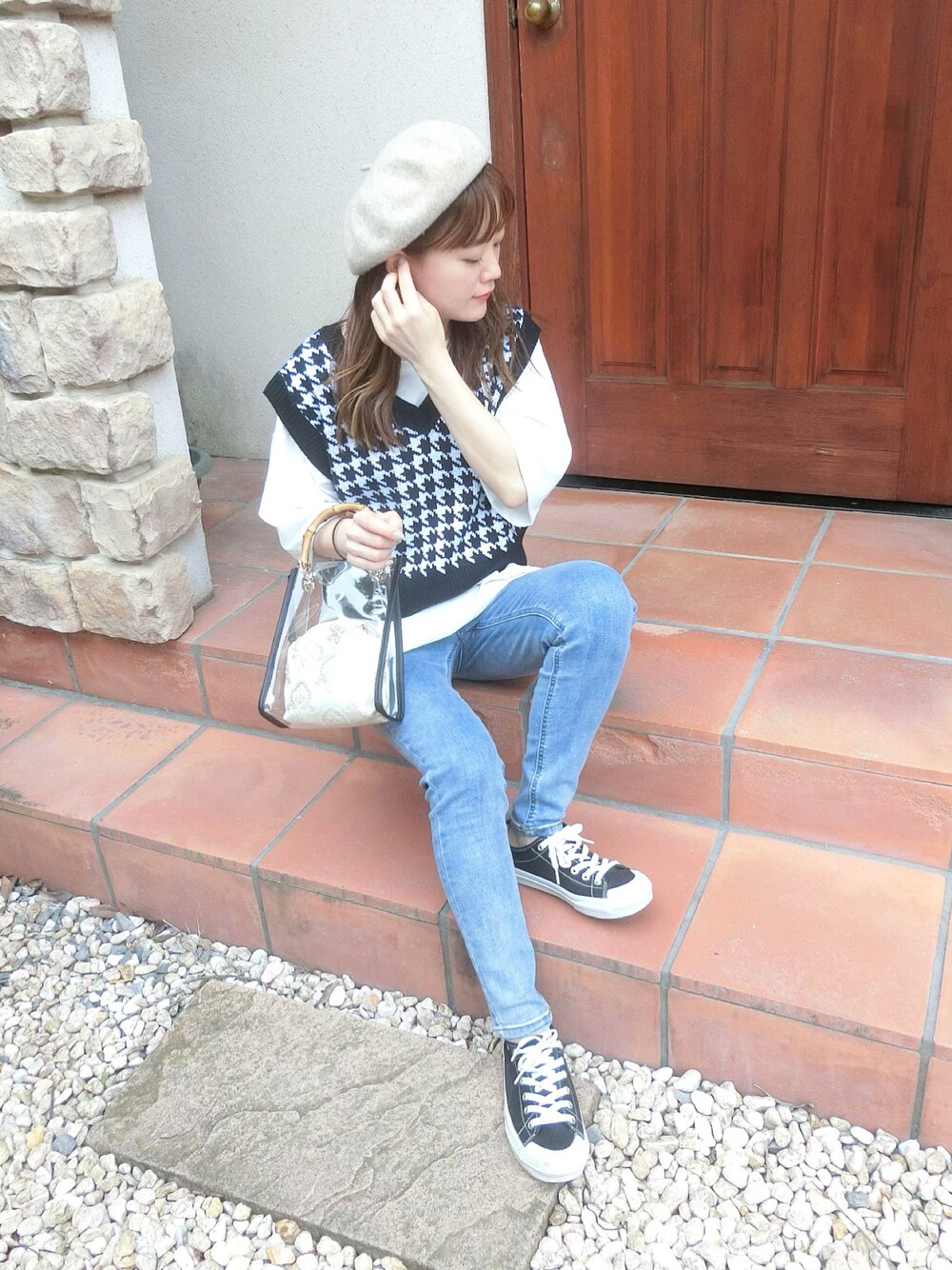 chicchimoのベスト「WEGO/コンパクトニットベスト」を使ったコーディネート