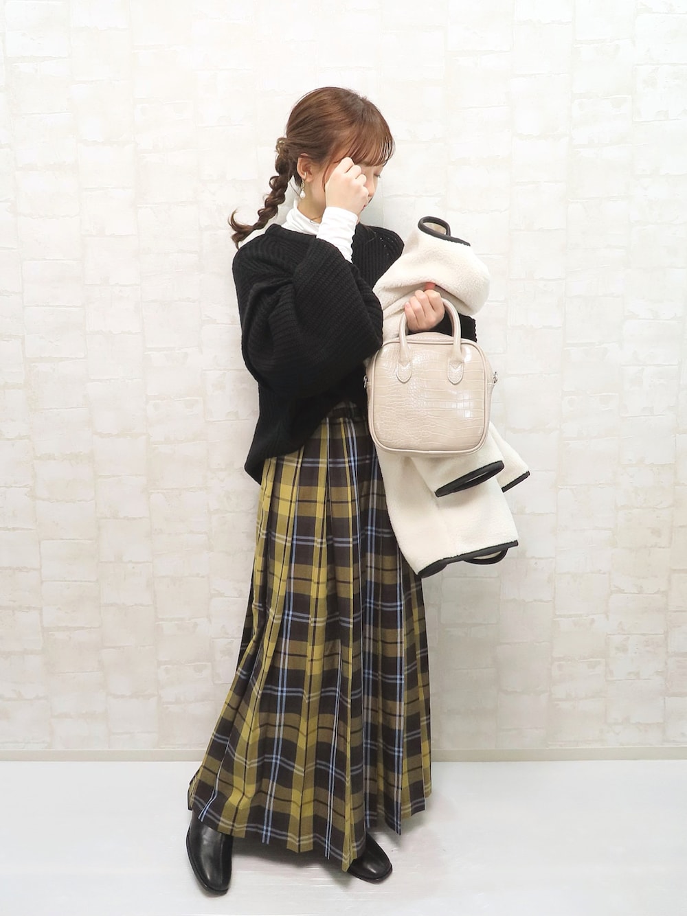 chicchimoのスカート「チェックプリーツイージースカート」を使ったコーディネート