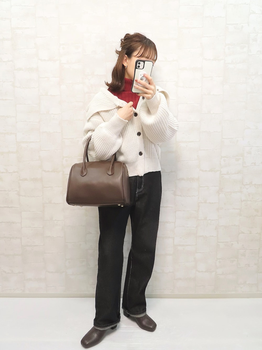 chicchimoのカーディガン/ボレロ「ビッグカラーニットカーディガン」を使ったコーディネート