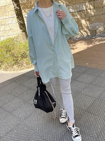 chicchimoのシャツ/ブラウス「ノーカラ―ボリューム切替ブラウス」を使ったコーディネート