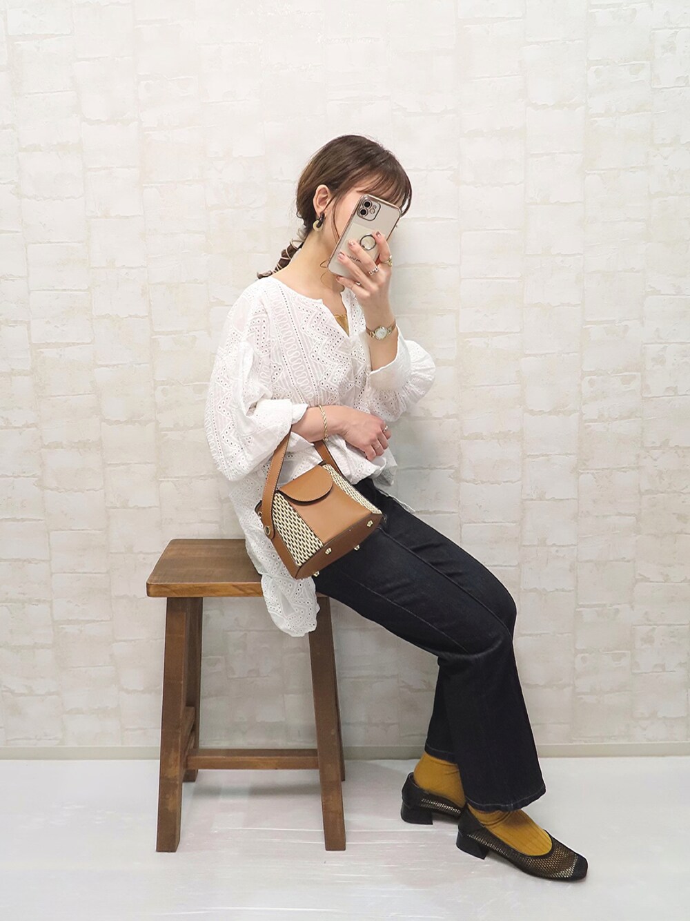 chicchimoのシャツ/ブラウス「エンブロイダリーキーネックブラウス」を使ったコーディネート