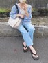 chicchimoのデニムパンツ「【WEB限定】スタイルアップ抜群 デニムストレートパンツ」を使ったコーディネート
