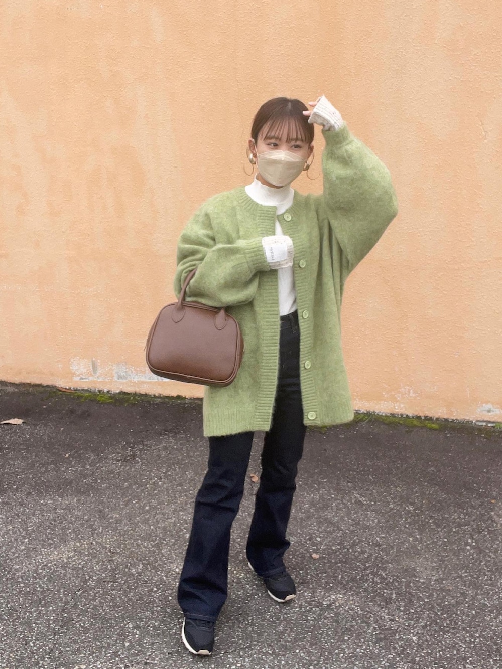 chicchimoのカーディガン/ボレロ「オーバーシルエットモヘアカーデ」を使ったコーディネート