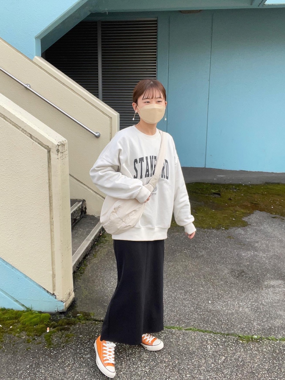 chicchimoのスウェット「【選べるサイズ】ロゴプリント裏毛ルーズプルオーバー カレッジロゴ /トレーナー/スウェット」を使ったコーディネート