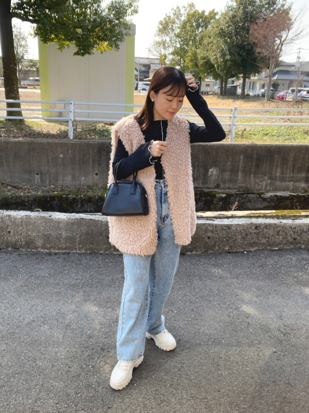 chicchimoのベスト「パッと目を惹くコーデの主役。ボリュームプードルフェイクファーベスト」を使ったコーディネート