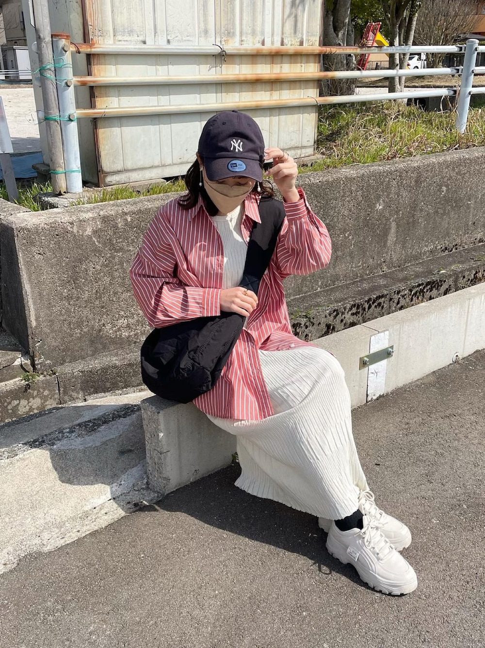 chicchimoのシャツ/ブラウス「気分が上がる、毎日にちょうどいい。Happyストライプ!ワンポイント刺繍BIGシルエットシャツ」を使ったコーディネート