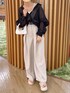 chicchimoのシャツ/ブラウス「大人のフェミニン。シアーバンドカラー オーバーサイズ ビッグシャツ」を使ったコーディネート