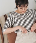 chicchimoのTシャツ/カットソー「ボーダーメロウTシャツ」を使ったコーディネート