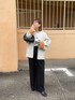 chicchimoのノーカラーコート「バイカラーニットコート」を使ったコーディネート