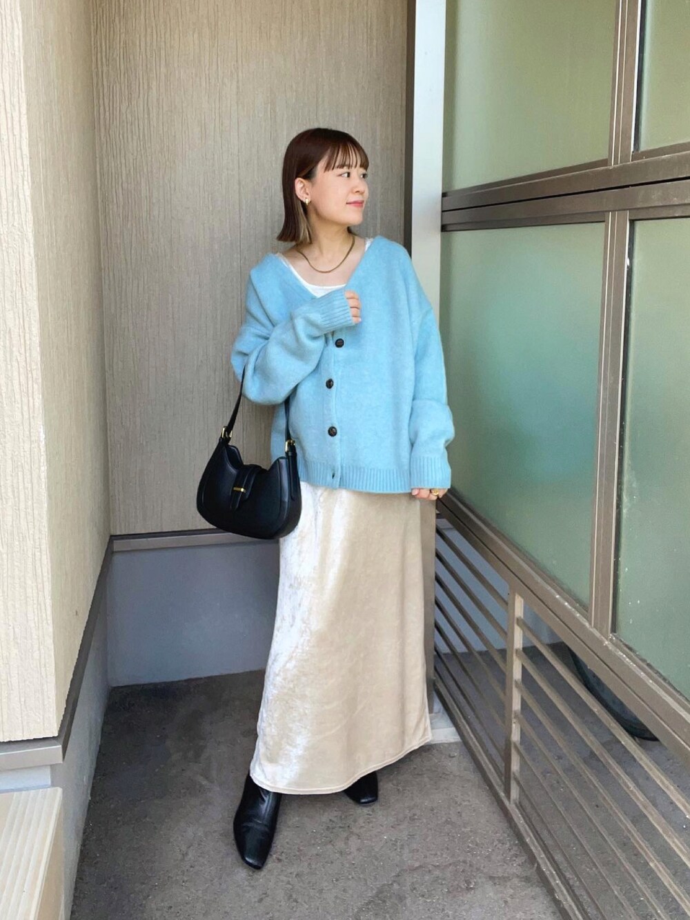 chicchimoのカーディガン/ボレロ「オーバーソフトニットカーディガン」を使ったコーディネート