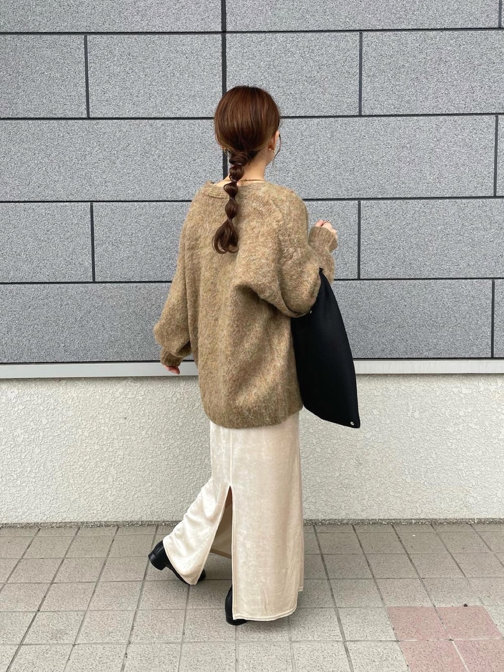 chicchimoのカーディガン/ボレロ「【wool】シャギーVネックBIGカーディガン」を使ったコーディネート