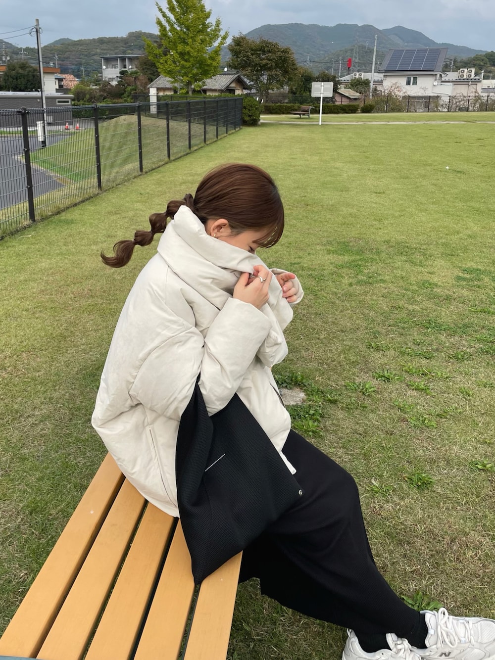 着用コーデ:54件見てくださりありがとうございます。 中綿にグリーンダウンを使ってるから、 エコも考えられたアウター🧥🌿 ステッチレスダウンでどんな服にも合わせやすい🥹!サイドジップをあければ違った印象で着られます🌼 マフラー付きも嬉しい🧣♡ Instagram→wear.chicchimo いつも いいね,お気に入り,フォローもありがとうございます!