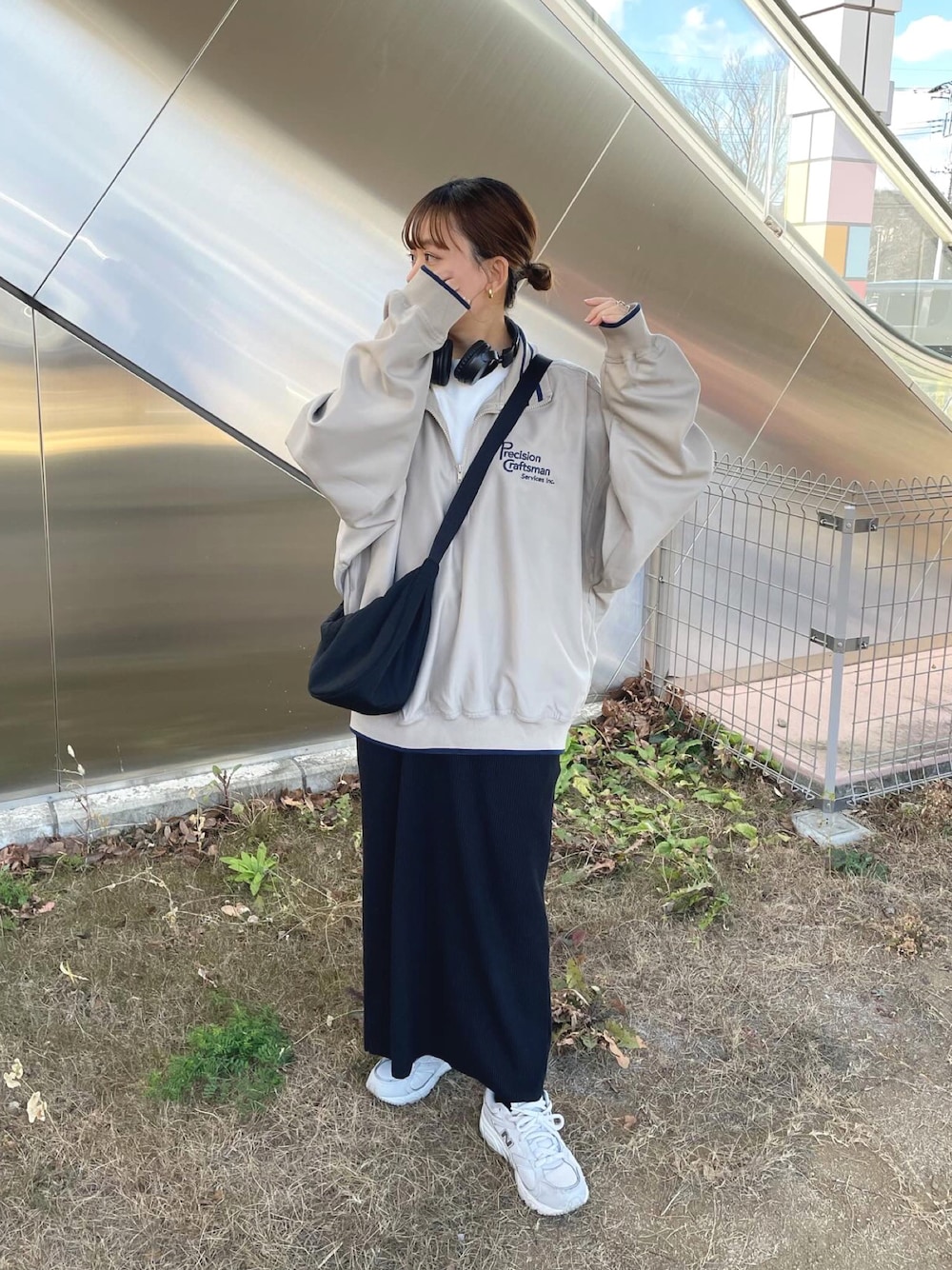 chicchimoのスウェット「《JaVaジャバ 別注》カジュアル×メンズライク。リブラインロゴ刺繍ハーフジップ オーバーサイズ プルオーバー(セットアップ可能)」を使ったコーディネート