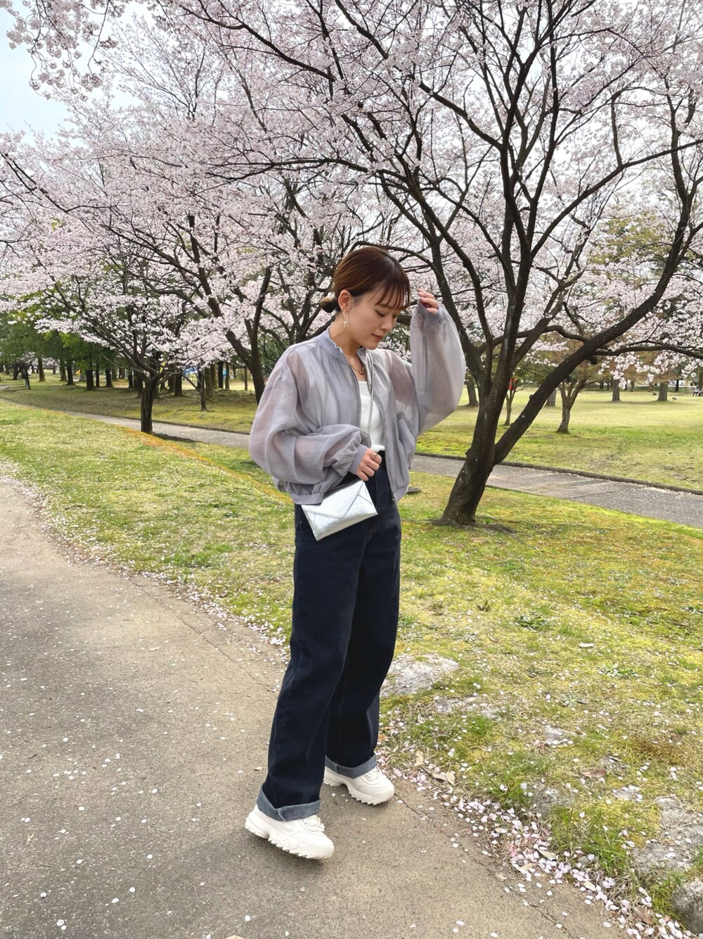 見てくださりありがとうございます。 お花見行った日🌸 ポカポカ陽気でシアーブルゾンが大活躍でした✨ 夏のエアコン対策にも使える🙆♀️ Instagram→wear.chicchimo いつも いいね,お気に入り,フォローもありがとうございます!